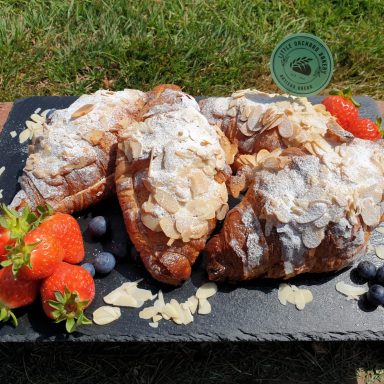 Handmade with real butter. These almond croissants have been carefully crafted to give the full buttery taste. Made without any additives or preservatives. We've had so many lovely comments about these.